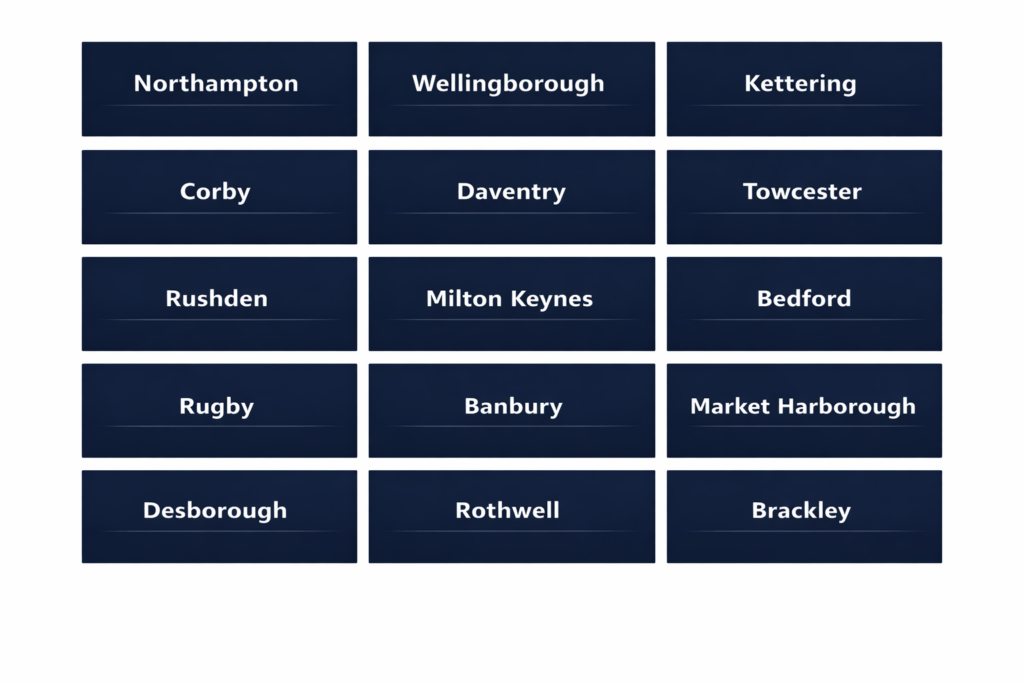 We support trade professionals across Northamptonshire and the surrounding region. Whether you work in one town or operate across multiple areas, our systems are built to scale with you — giving you consistent visibility and reliable lead flow wherever your customers are searching.